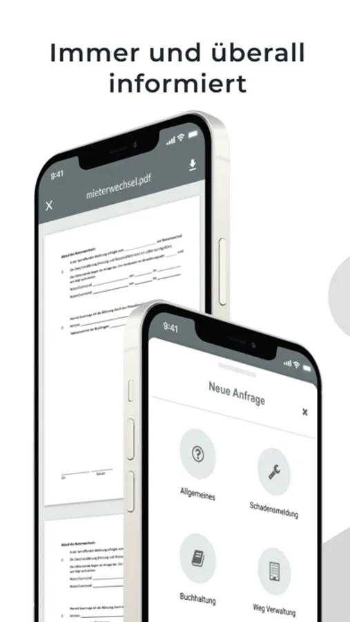 - Schadensmeldung direkt via Smartphone inklusive Fotos an die zuständigen Personen senden