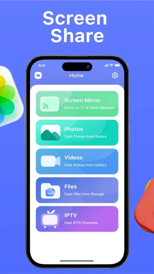 Thanks to our application, you can easily share your content with friends and family, watching movies, presentations together, or simply showing your best photos on the big screen.