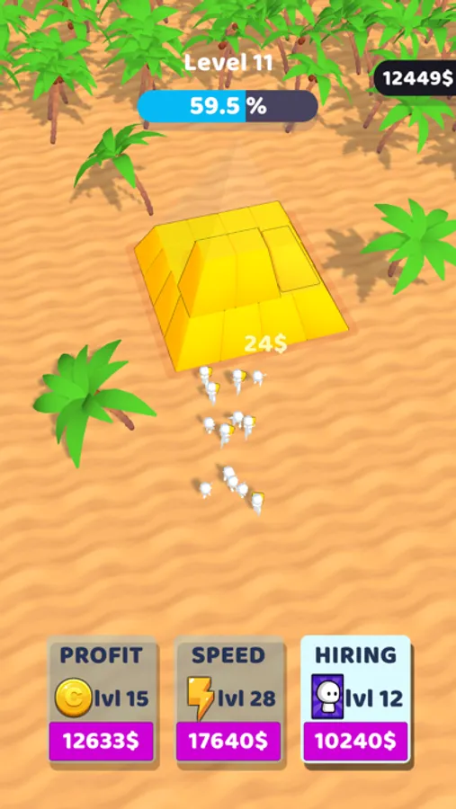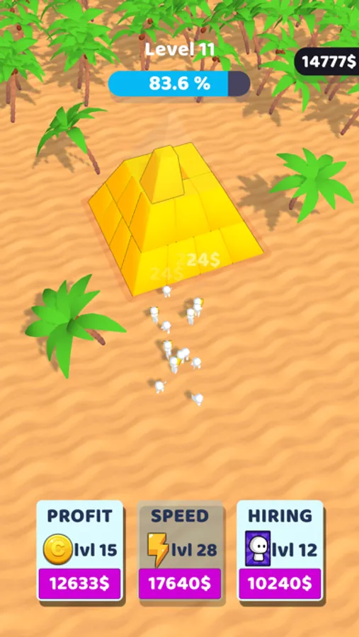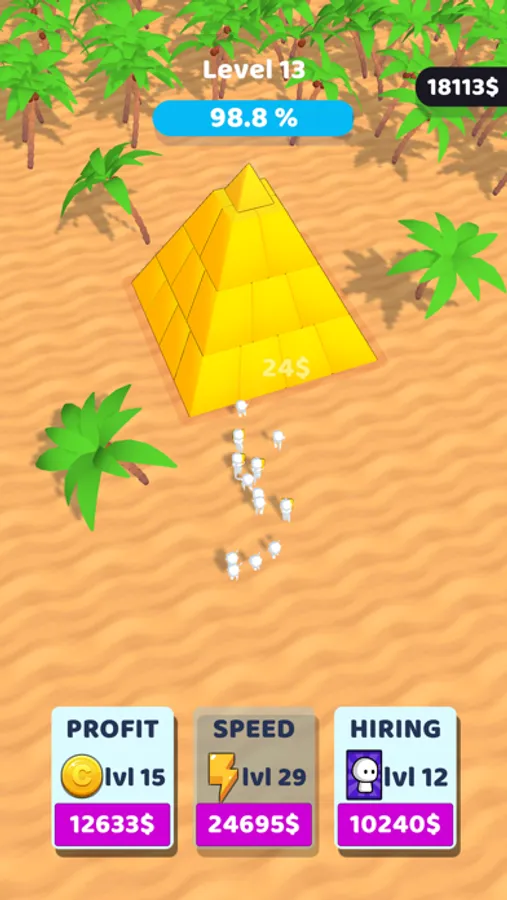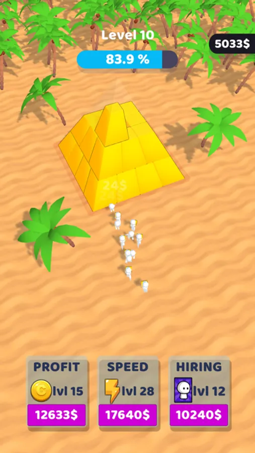 In this strategy game, you become an entrepreneur constructing a pyramid. Hire builders, manage resources, upgrade profits, and speed up construction. Compete to be the top pyramid tycoon.