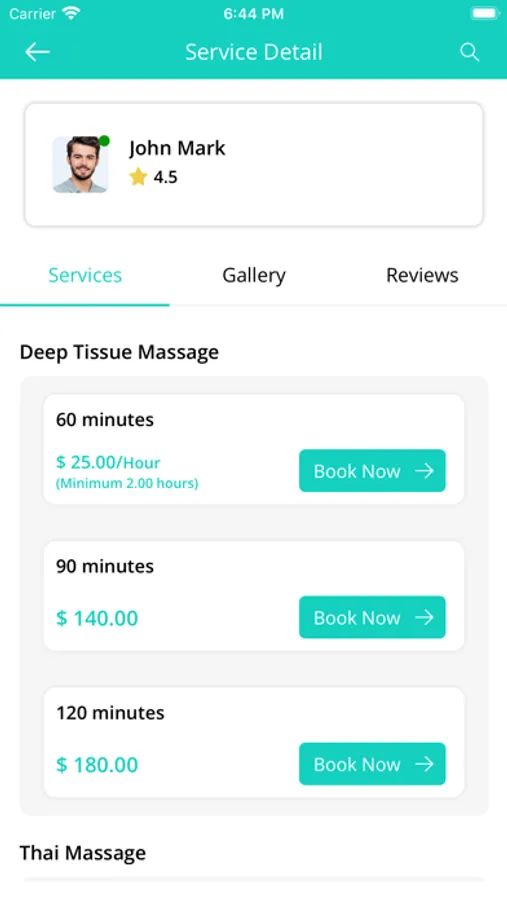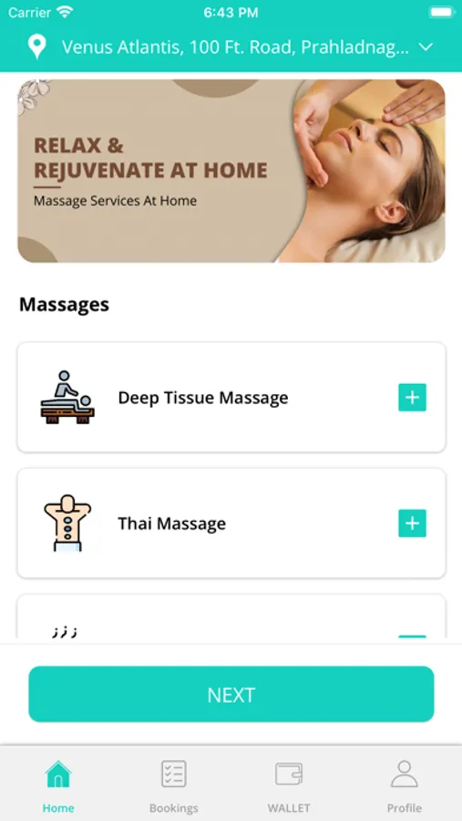 1) Select the category of service (i.e Massage)