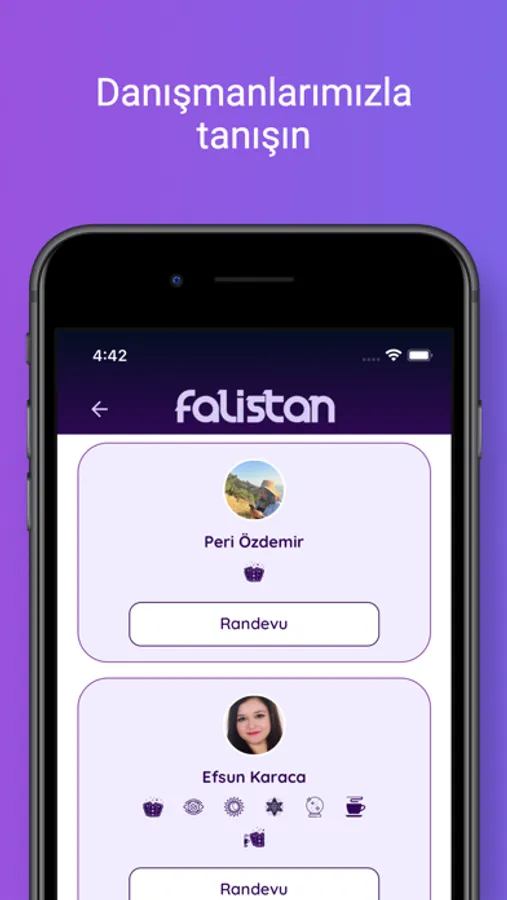 Danışmanlarla Tanışın: Uygulamamızda yer alan her danışmanın detaylı profili sayesinde, uzmanlık alanları, deneyimleri ve kullanıcı geri bildirimleri hakkında bilgi edinebilirsiniz. Böylece, size en uygun danışmanı seçerken bilinçli bir karar verebilirsiniz.