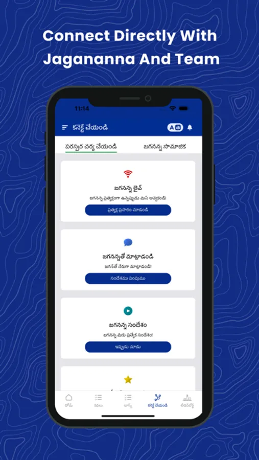 Team Jagananna is a first-of-its-kind mobile app designed to bring Jagananna only a click away from you. It gives you the option of video calling or chatting with Jagananna, and directly conveying your ideas for developing our Andhra. Through this app, the people of Andhra can stay updated on political developments, connect with their local leaders, meet fellow supporters virtually and earn reward points by engaging with & sharing our content.