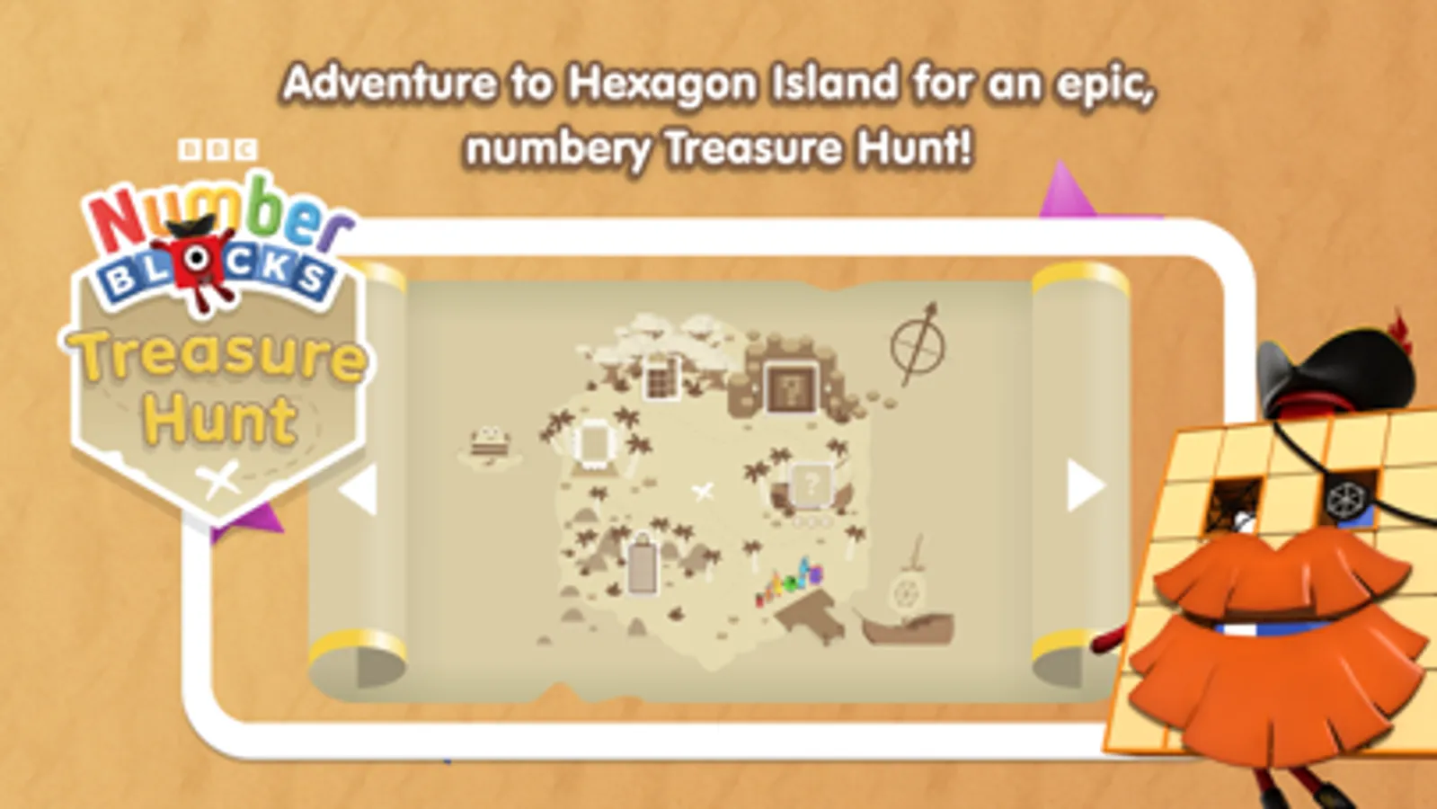 Ahoy there, Number Explorers! Are you ready for the number adventure of a lifetime? Grab your pirate hats and set sail to Hexagon Island for an epic, numbery Treasure Hunt! Pick between three adventures and help train the Numberblocks in a series of BRAND-NEW games, all designed to help develop your little learner's number sense, the foundation for mathematical fluency. Legend has it that rascly pirate, Captain Hexbeard, has buried her treasure across the island; complete the challenges and be in with a chance to win some to take back to the mainland!