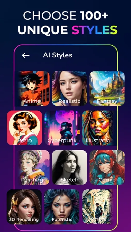 Imagine AI offers an extensive collection of art styles, providing a limitless spectrum of possibilities to fuel your creative vision. Immerse yourself in the world of AI-generated art, ranging from Realistic, Anime, Painting, and Pixel Art to Cyberpunk, Poster Art, Line Art, Comic, Vintage, Glass Art, Paper Cut, Graffiti, and beyond!
