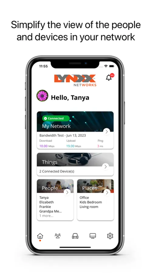Lynxx CommandIQ provides subscribers with the tools to secure and take control of their home Wi-Fi network. Protect your home with app features like network security, password and SSID management. Take control with app features such as parental controls, device management, view connected devices, and perform bandwidth speed tests.