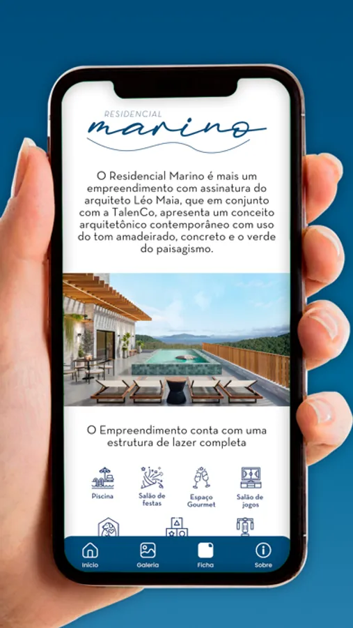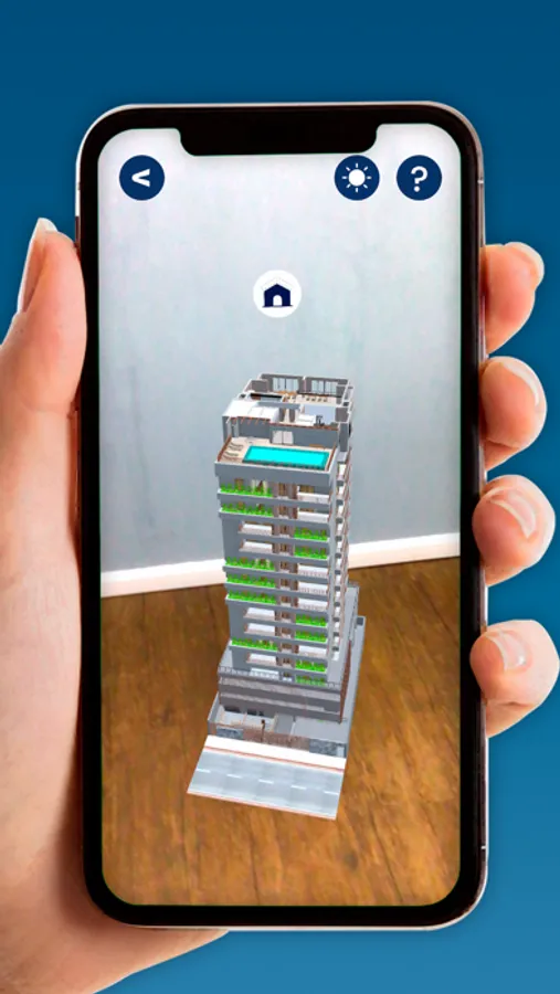 Pelo aplicativo, você poderá explorar o projeto 3D em realidade aumentada e acessar a fachada, área da piscina e uma deslumbrante cobertura que reserva o conforto que você merece.
