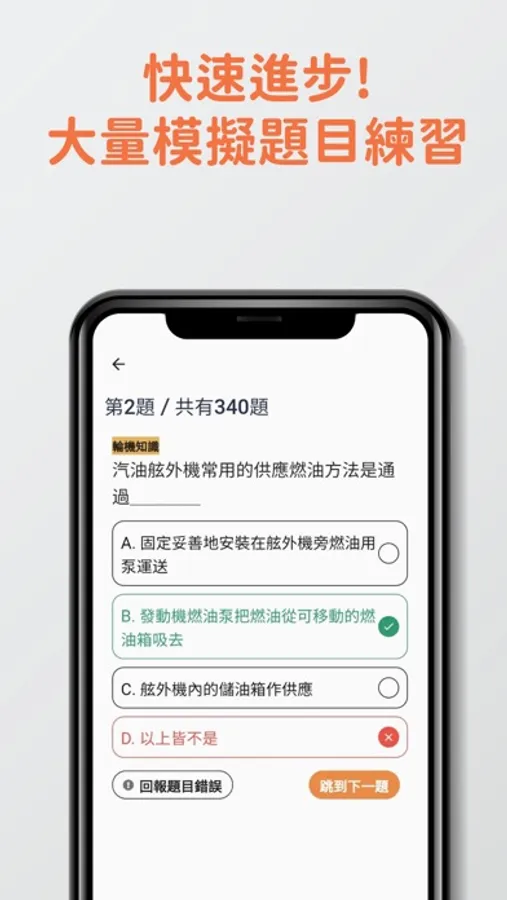 7天船牌考試還擁有豐富的練習題庫和模擬考試,讓您可以在練習中不斷提升自己的知識水平,並且在考試前熟悉考試形式,增加自信心。此外,我們的APP還提供了詳細的解析和錯題筆記功能,方便您進一步理解和記憶知識點。