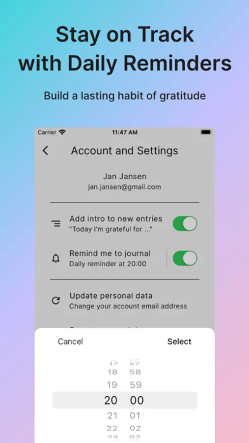 With our app, you can easily create a daily habit of gratitude journaling by reflecting on the good things in your life and recording them in your own digital journal. Our customizable reminder helps make it easy to stay consistent and build a lasting gratitude practice.