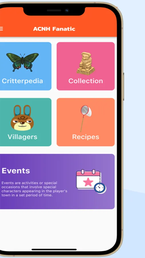 ACNH Fanatic is an unofficial application created by devoted fans of Animal Crossing: New Horizons. It is not affiliated with the Animal Crossing brand, Niantic, Animal Crossing: New Horizons, or Nintendo. This third-party app aims to provide you with valuable information about bugs, fish, events, and community projects, enhancing your gameplay experience.