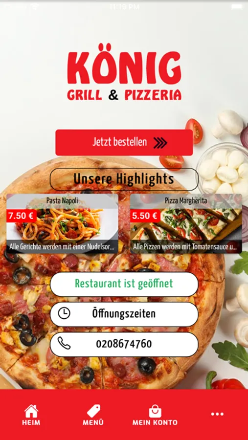 Herzlich Willkomen bei König Grill & Pizzeria in Oberhausen. Wir bedienen unsere Kunden mit Pizza, Pasta, Burger, Salate Speisen und machen das seit mehreren Jahren aus Leidenschaft. Wir freuen uns immer wieder neue Kunden unsere Herkunft näher zubringen und möchten ihnen die Möglichkeit geben, ihre Bestellung unkompliziert und total einfach abzugeben. Aus diesem Grund, möchte wir ihnen unsere neue App und unseren Online Shop vorstellen, mit dem Sie problemlos über Paypal, Bar und Kreditkarte zahlen können.