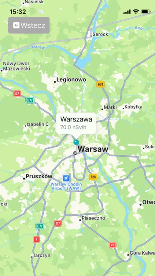 Aplikacja zbiera dane o promieniowaniu z oficjalnych czujników zlokalizowanych na terenie kraju, odświeżając je co 4 minuty.