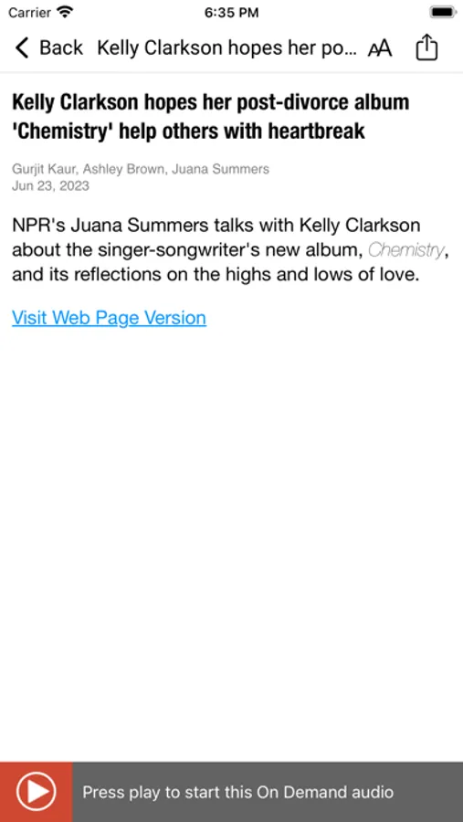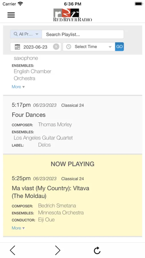 • The Red River Radio App displays the web page associated with the program or program segment you are listening to On Demand so you can explore for more information.