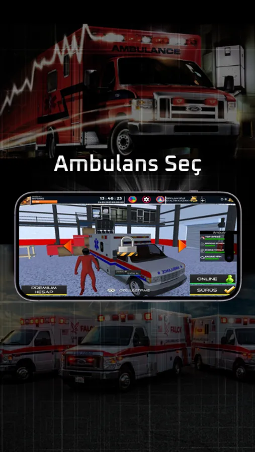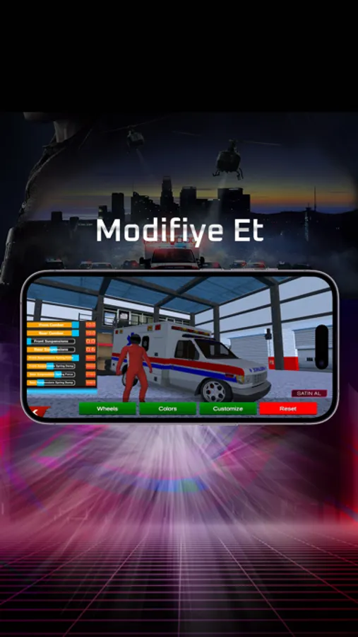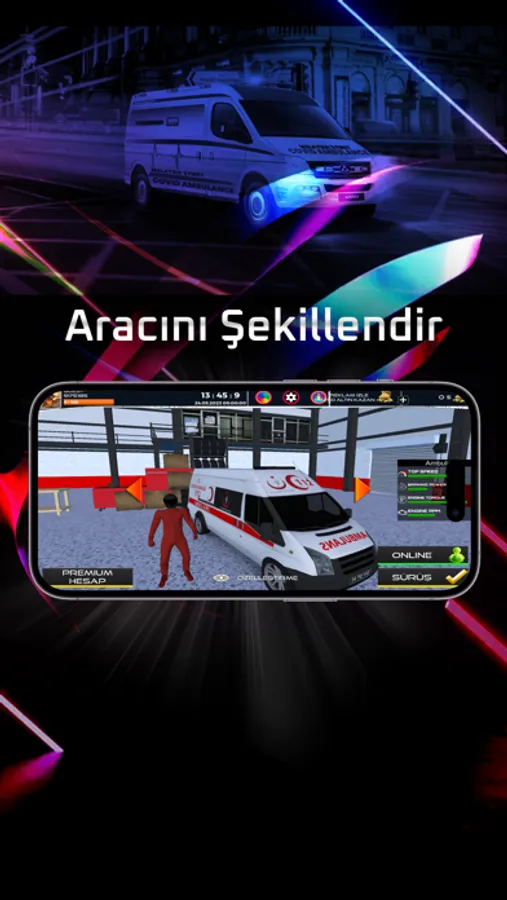 You can modify your ambulance. You can apply many changes to your vehicle such as color, Jang, License Plate, Exhaust, Sticker and Air Suspension.