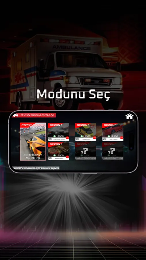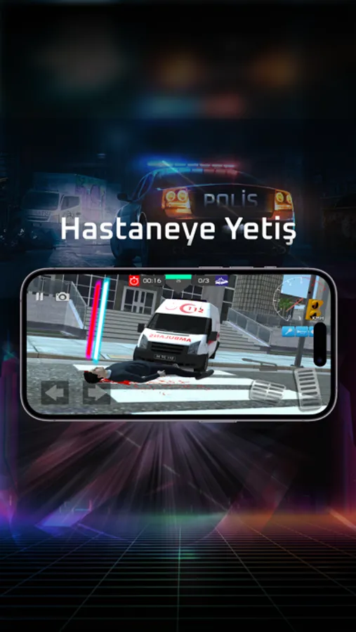 • Different ambulance driving modes! ( Drift, Free Ride, Crushing, Checkpoint, Parking )