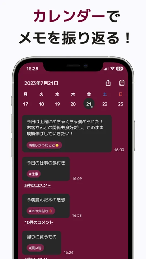 With this app, you can freely write your true feelings about what made you happy, what made you dissatisfied, what made you worried, and what made you happy.