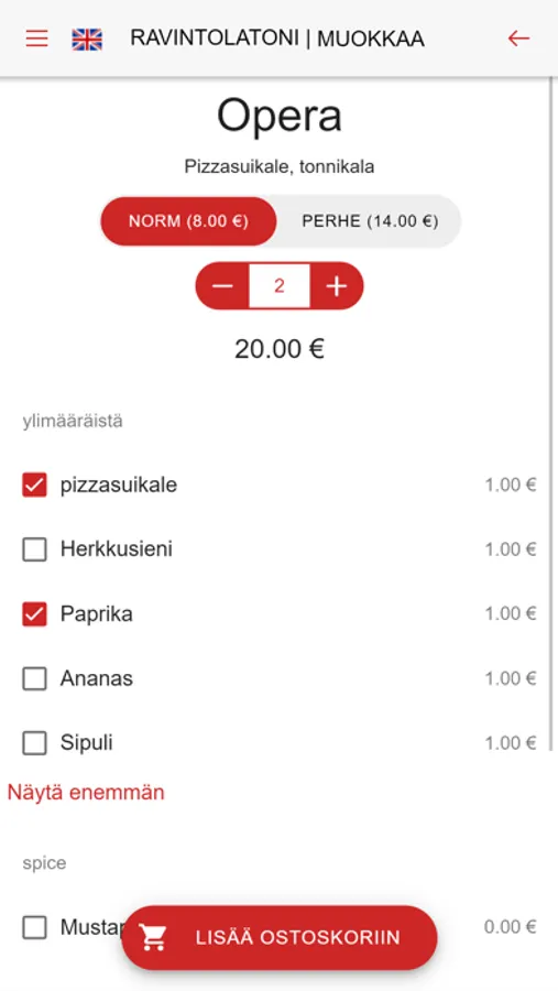 Ravintola Toni app lets you order pizza online in few steps. On opening the app, you have to choose the option for example going with quick menu browse or sign up first. If you are choosy about your pizzas, or wish to browse through the different options, you may browse through the entire menu of assorted offerings. You can also customize your food.