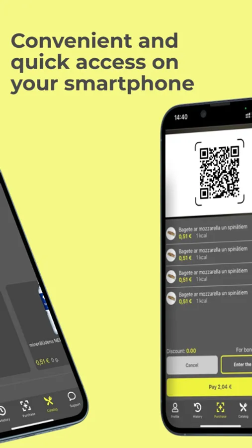 Scan the QR-code to enter the store or open a micromarket. Select the product you like, scan the code, select the appropriate payment type and make a purchase in the app.