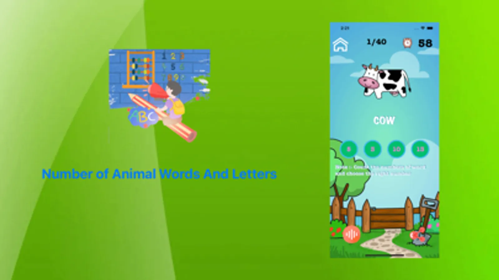 The number of animal words letter is a great skill with important applications in learning new languages and science. This app helps you expand your vocabulary and gain a better understanding of the mysteries and beauties of the animal world. Download now and start entering the animal world!