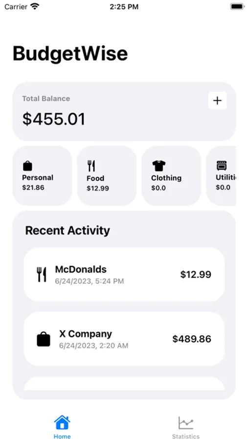 Categories & Filters: Categorize your expenses and income to gain a clear understanding of where your money is going. BudgetWise provides a range of default categories such as Personal, Food, and Utilities.