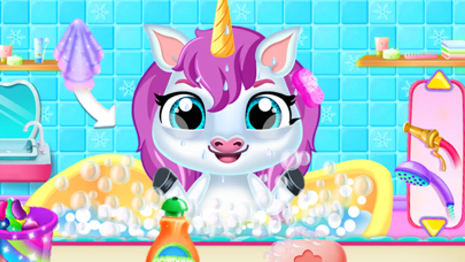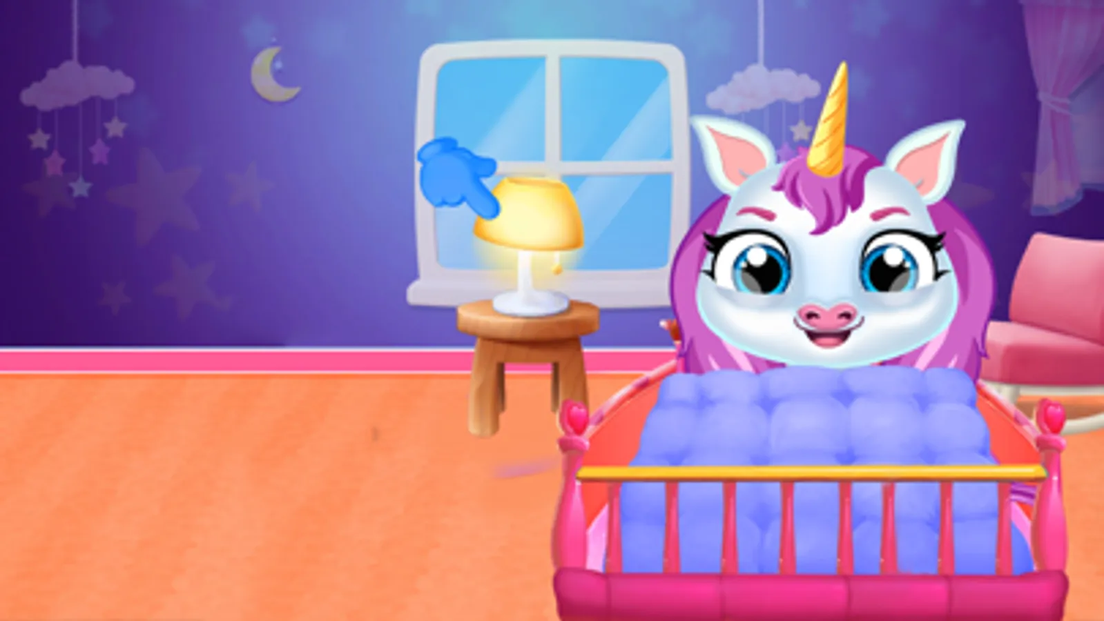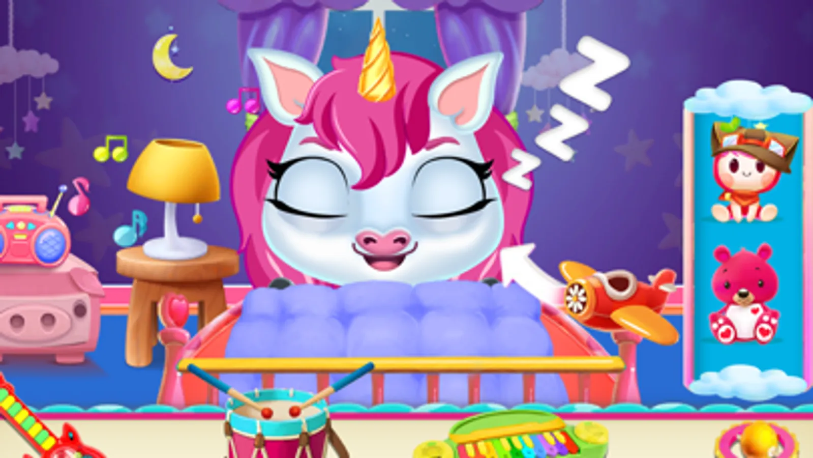 Play My Baby Unicorn virtual pet care game for kids every day and watch your virtual pet pony grow. Feed your baby unicorn fun and yummy foods: fruits, veggies, candies, donuts and even a cute unicorn cake. Give a squishy toy to your baby unicorn and sing the little one to sleep! Sweet dreams, baby unicorn!