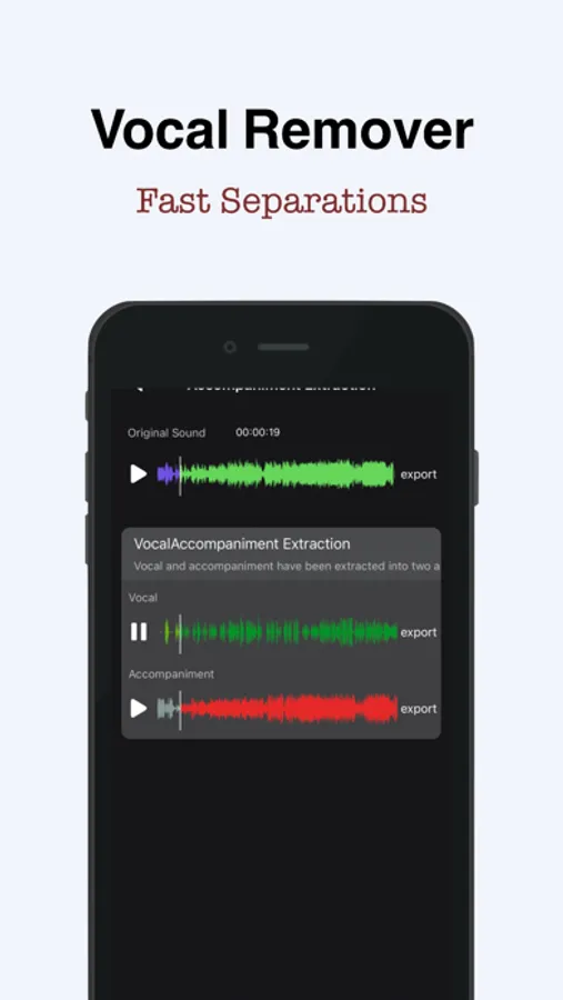 1. Song Accompaniment Extraction: Easily extract the accompaniment from any song in your iOS music library. Remove vocals, focus on the instrumental parts, and create unique instrumental works or use them for personal practice.