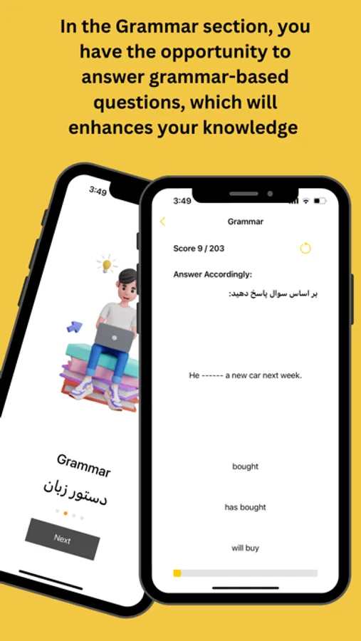 - Vocabulary: This section focuses on building a strong foundation of English words and phrases. Through interactive quiz exercises with Persian translation learners can expand their vocabulary and enhance their language skills.