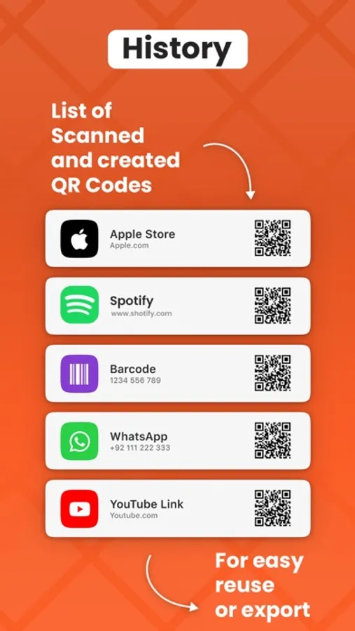 - Export & Organize: Export scan history as a CSV for use in Excel, Numbers, or save to cloud services like Dropbox and Google Drive.