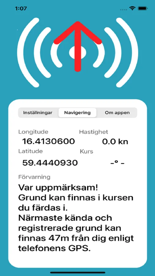Varnar för kända grund i din kurs eller i din närhet. Ett självklart kompliment till vanliga navigeringsappen på sjön.