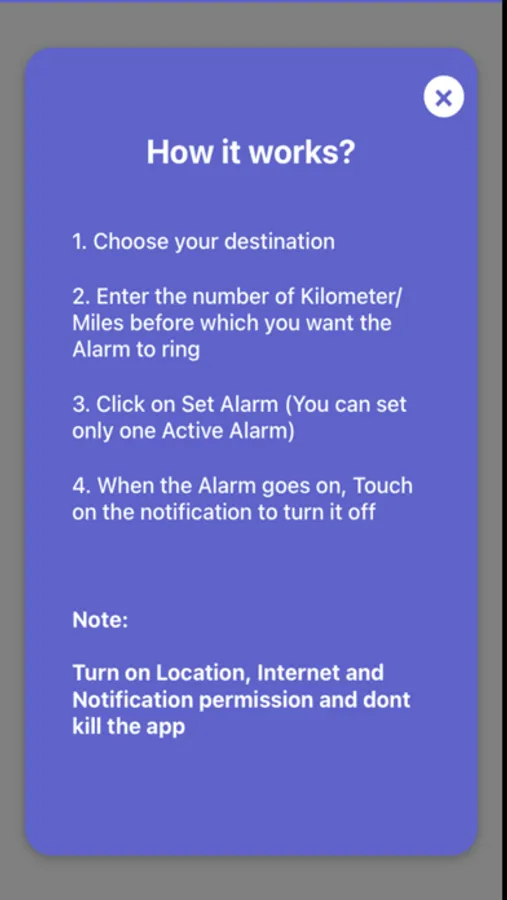 - Flexible distance options: Customize the alarm distance in kilometers or miles, according to your preference.