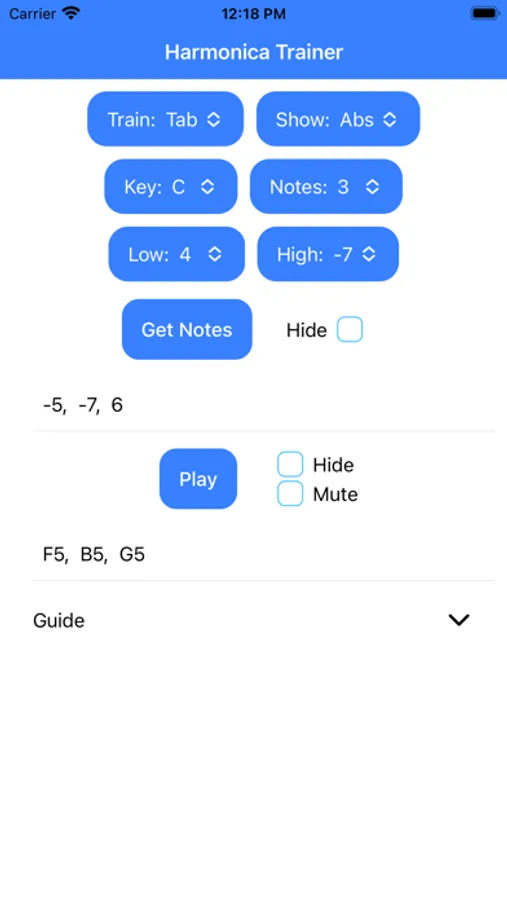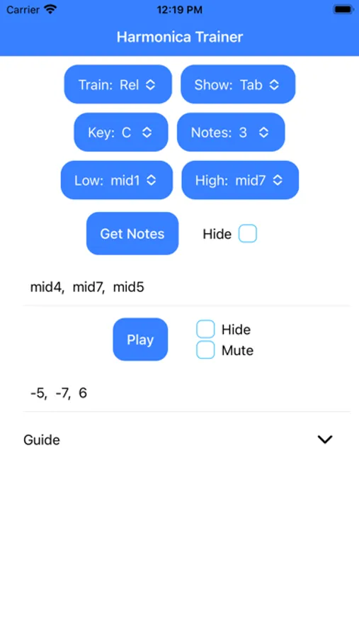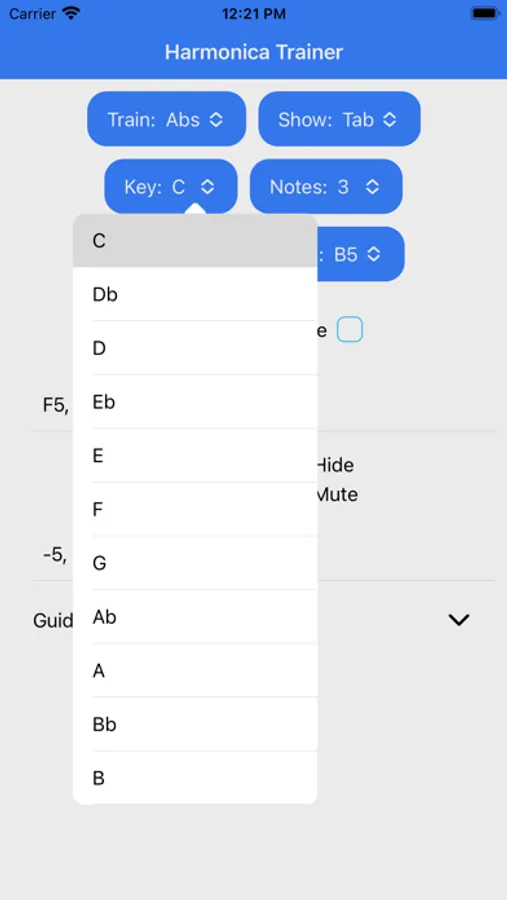 This tool helps you practice accurately finding the relative notes (relative to the scale) as well as the absolute notes (for example D5 on the C harmonica). By becoming aware of what scale note you are playing at each location (which is the same on all keys of these type harmonicas), you can then readily extrapolate actual note being played. For beginners, this tool can also be used to improve your accuracy in simply playing tablature. Then you can begin to work on the music theory and the location of the notes on the harmonica. Additionally, by having to listen closely to the audio (from yourself and the app when comparing) it improves recognizing notes and intervals (essentially some ear training). Suggestions for improvements are welcome at the email: HarmonicaTrainer@timkemper.com