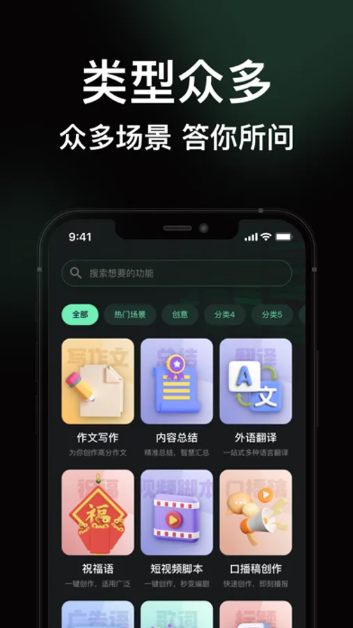 Al智能写手做为一个人工智能产品,不仅可以充当你的创作小助手,还能为你提供写报告、文章润色、视频脚本、翻译文字、小说创作等多种帮助。