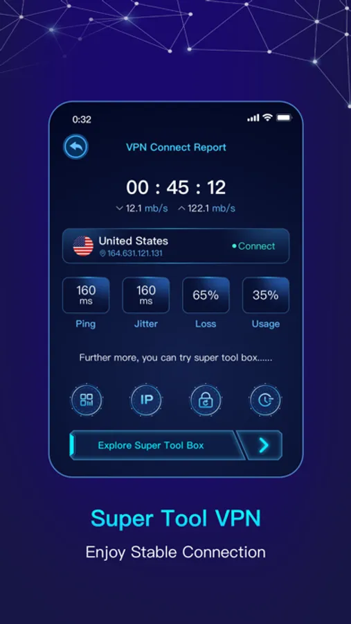 You may have reliable internet access and browse the internet without being concerned about hackers, spies, or other online risks when you use SuperTool VPN Online Privacy+. With the help of this app, don't worry about that someone may monitor your online activities. Because it encrypts your data, safeguards your privacy, and masks your address.