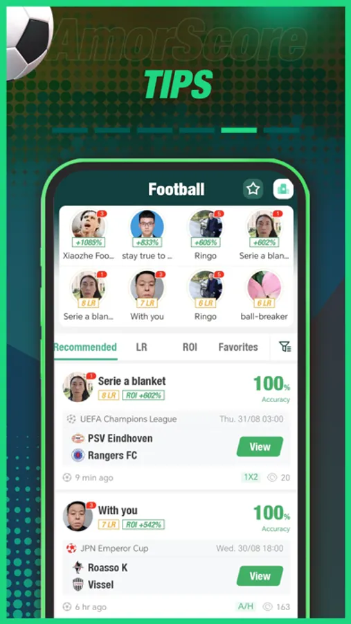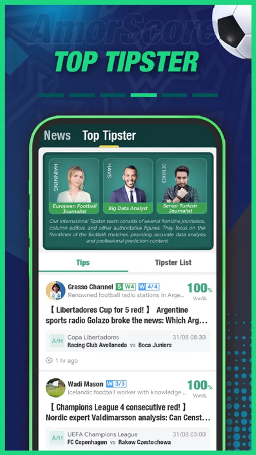 AmorScore provides you with a premium match experience, where you will get the scores, results and a full range of match statistics faster than TV viewers.