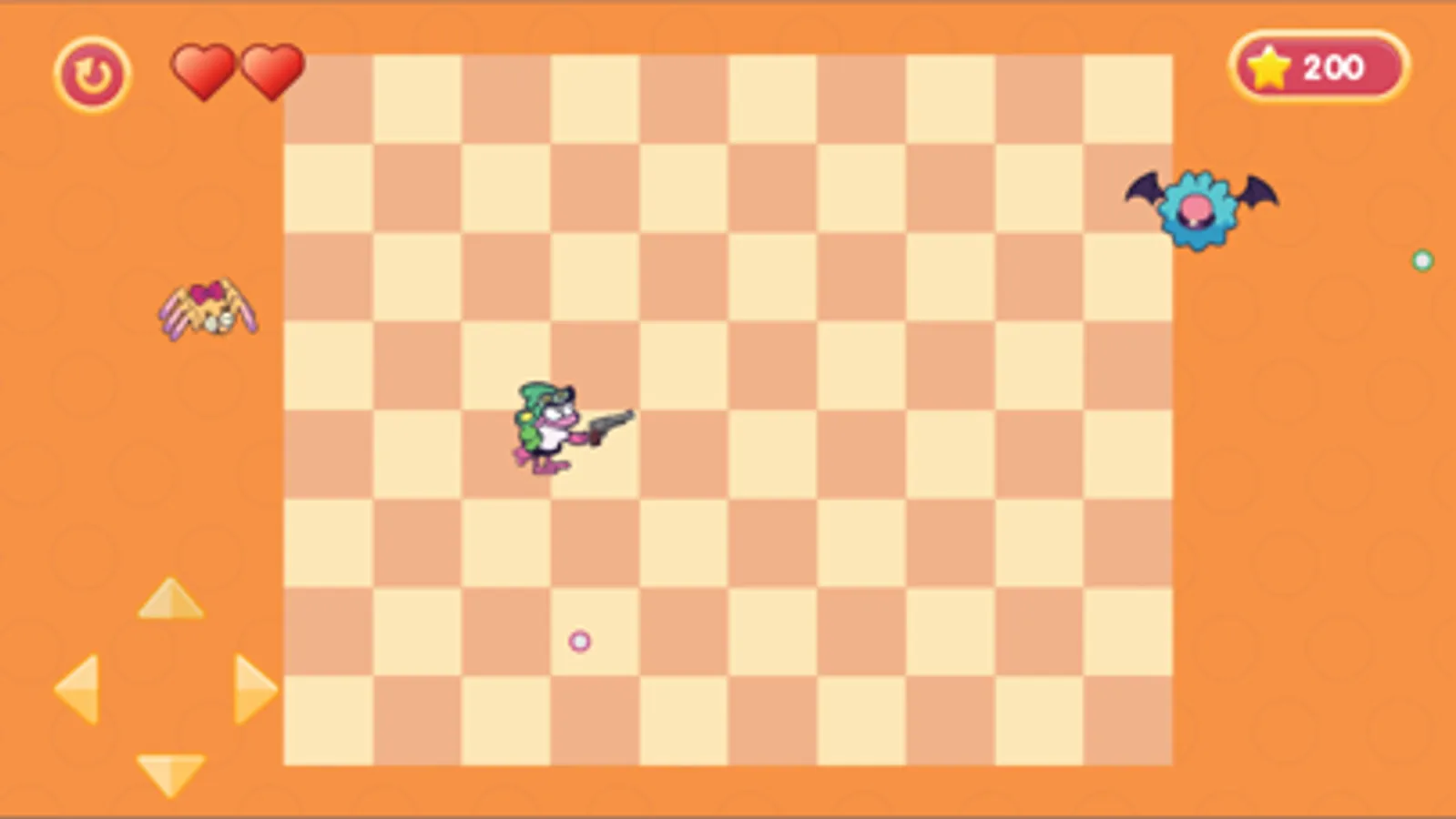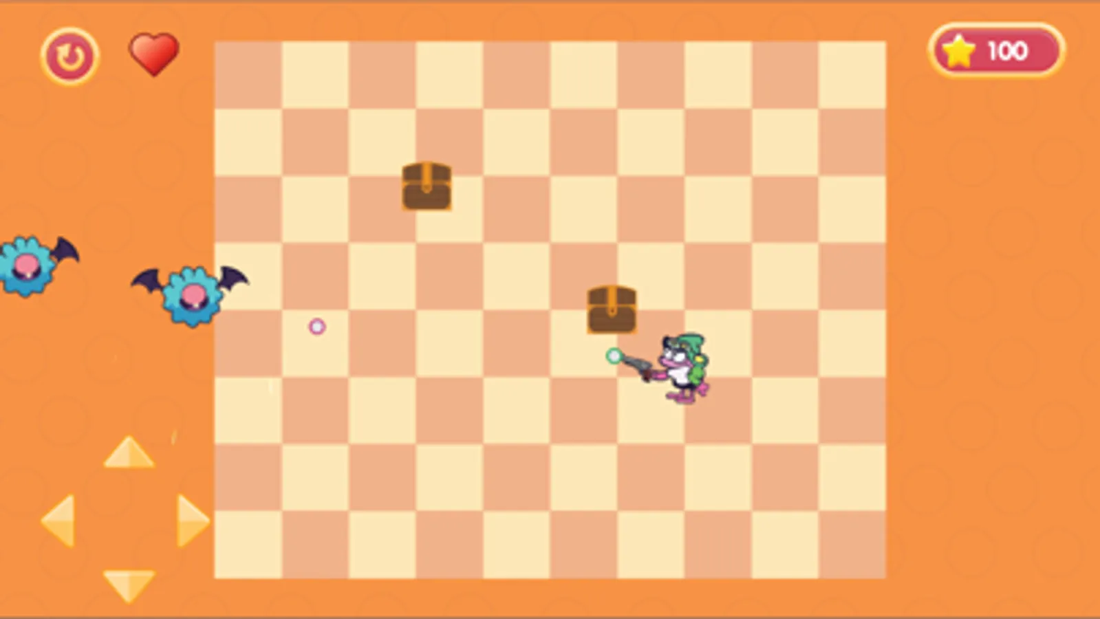 Turn heman's gun towards bats and spiders to destroy it, chests will appear when opening it and absorb the magic inside, heman can make his gun shoot continuously for 2 seconds with great bullet speed.