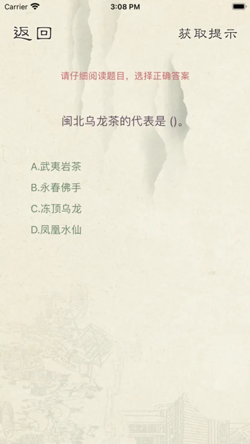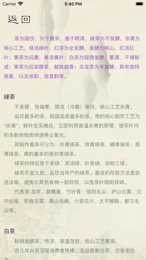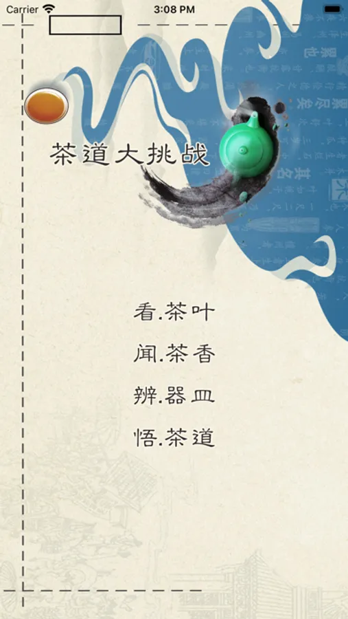 茶道大挑战APP收集了很多关于茶道的知识,通过“看茶叶”、“闻茶香”、“辨器皿”、“悟茶道”使用户更加深刻的体会茶道之美!