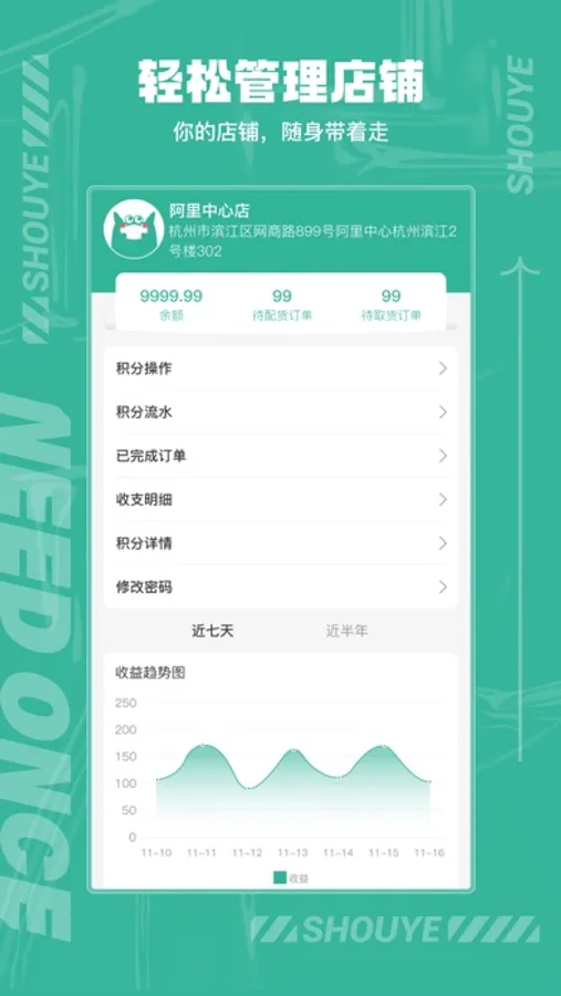 【管理方便】简单实用,一部手机统一管理,随时随地轻松掌握店铺信息