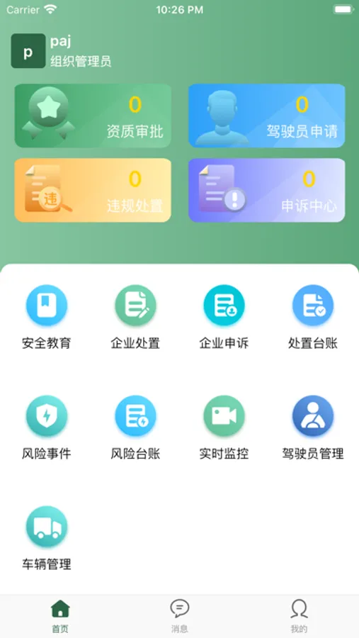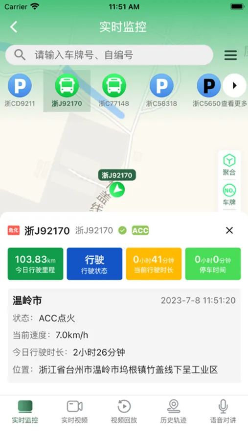 查看并管理驾驶员车辆,处理风险,违规等事宜,监控车辆运行,查看定位,实时视频,历史轨迹
