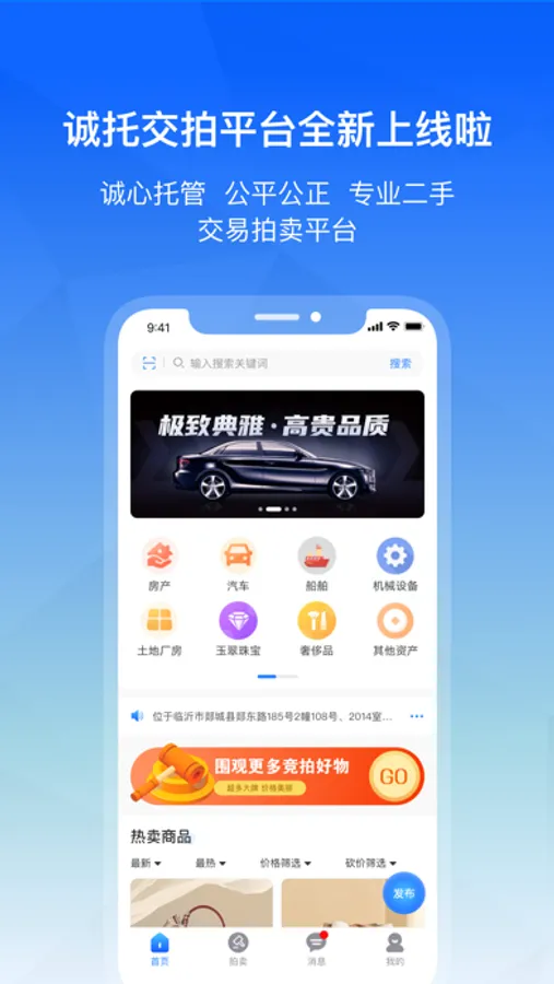 “诚托交拍APP”商务平台作为上海柏略机电工业服务有限公司的主营方向,为用户提供发布与抢购拍品为一体的交易服务平台,平台拥有全国优质资源,包含房产、汽车、机械等拍品。平台开启线上拍卖新模式,助您实时线上竞拍捡漏众多好物。