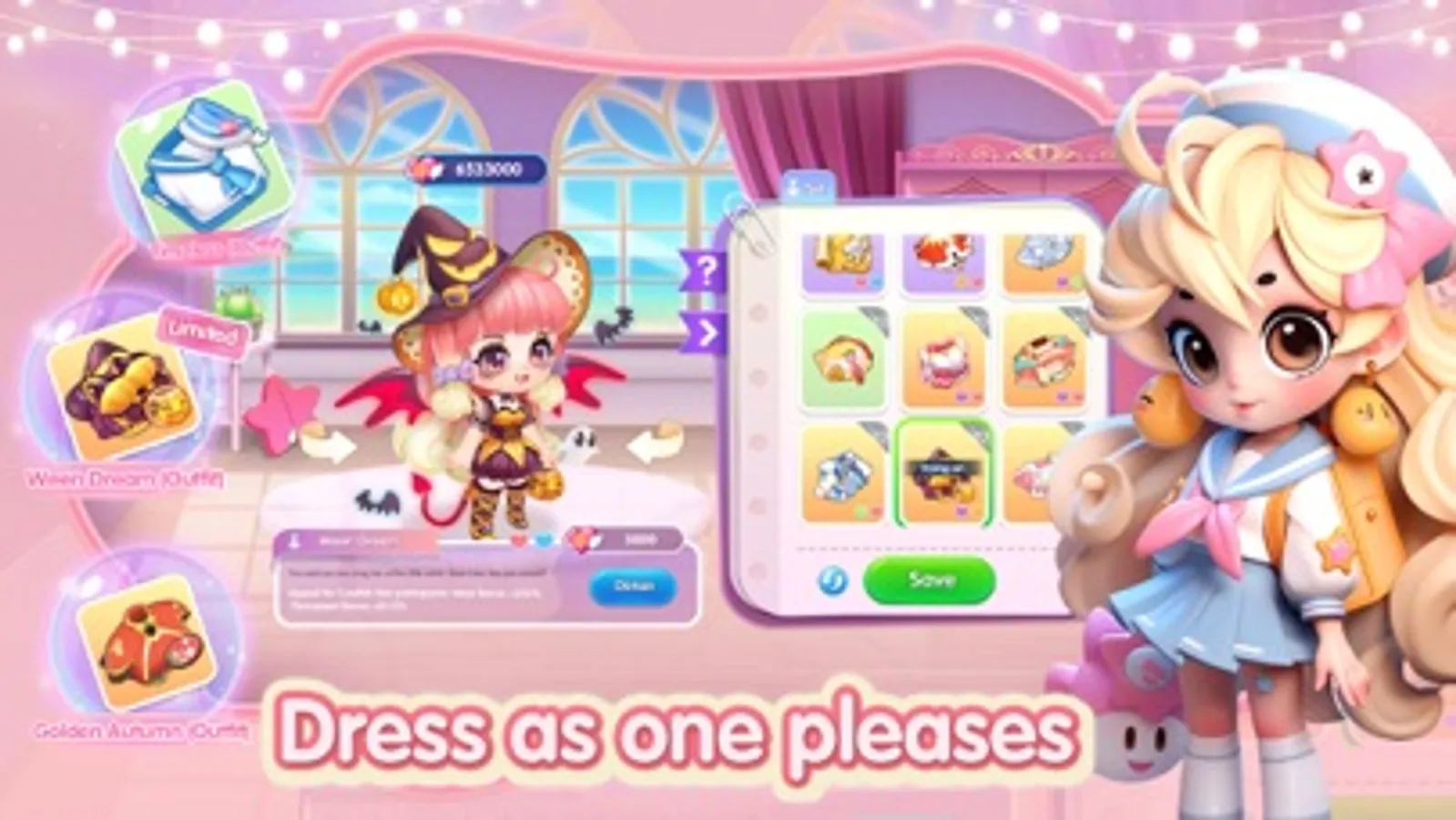 Collect outfits and props to match your style perfectly. Hairstyles, makeups, dresses, bags, shoes, etc. Find your styles from a vast variety of exquisite items and enjoy the fun of dressing Bubble up.