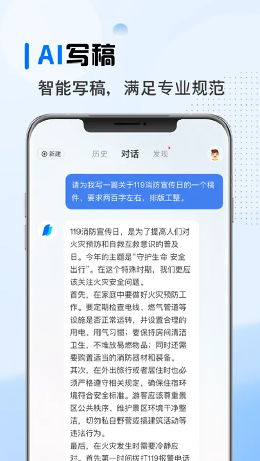 AI 4.0智能文稿撰写助手,为您提供高效、智能的写作体验。不论是公文、媒体宣传稿、各种通知公告还是原创文案,AI助手都能满足您的文稿撰写需求。在各种工作和学习场景中,AI助手都能助您轻松创作出精彩文稿文案。