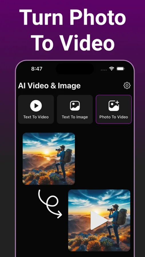 Photo to Video: Convert your photos into engaging videos in a snap.