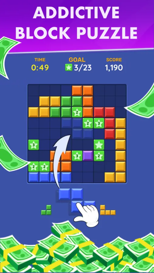 Are you ready to play a fast puzzle game for real money? Introducing Block Blast Cash the perfect mix of block and brain Puzzle games, combining creativity with the classics! The simple control, wonderful sound effects, and a great rhythm! Block Blast Cash will leave you wanting more!