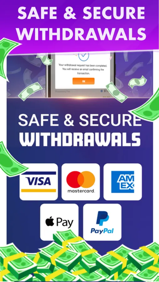 - It's safe and easy to withdraw your winnings with PayPal. We also work with trusted partners, including Apple Pay, Visa, Venmo, and more to make the deposit and withdrawal process secure, smooth, and worry-free.