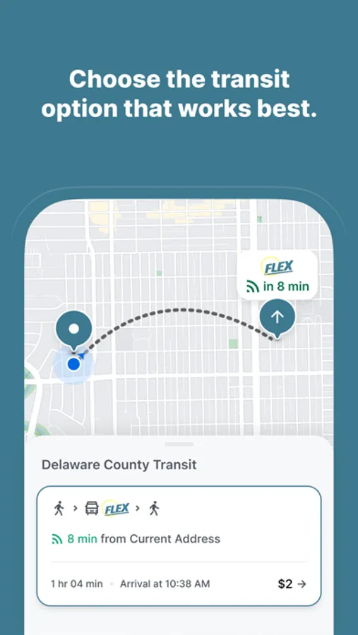 Delaware County Transit’s Flex Service is an easy way to travel within Delaware City limits. Check our website for operating hours and service zone. It’s a rideshare service that is smart and affordable! With just a few taps you can book a ride, see notifications, and track your ride in real-time as it approaches.