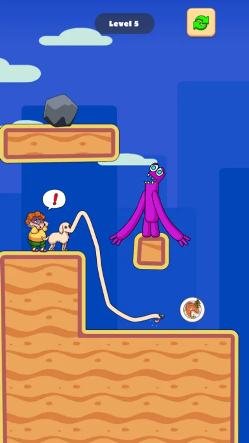 To do that, you must help the dog overcome obstacles, sometimes facing evil monsters