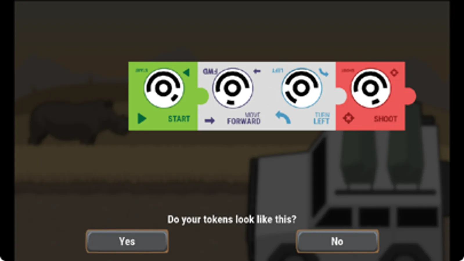 In order to reach the goal, you have to place the tokens in a potentially correct order, take a picture and watch as the ranger moves and shoots nets to capture poachers. Look out, though! The poachers will be trying to capture the rhinos that may be present on some levels.