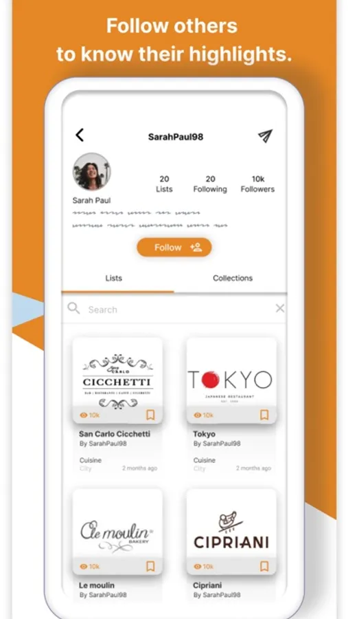 You can create and keep in touch with your foodie community to know their latest by creating an account, following each other and saving their recommended restaurants and dishes to try it later