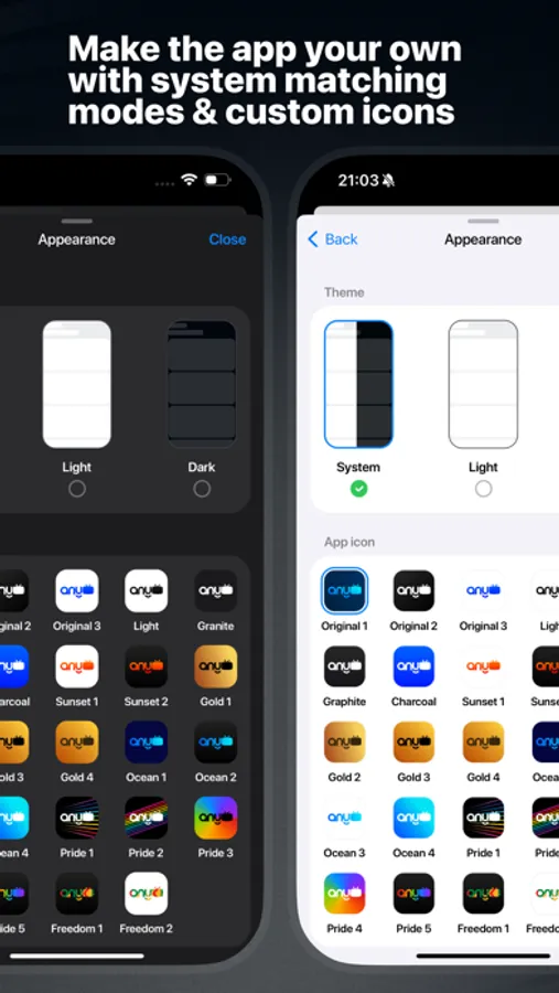 • Dark and light mode support