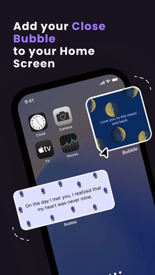 Bubbl is a widget that shows live text feeds from your best friends, right to your Home Screen. You and your best friends will see each other's thoughts & statuses every time you unlock your phone. It’s a little glimpse of what everyone’s up to throughout the day.