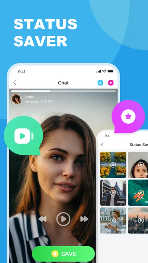 - Statuses Saver: save your favorite videos from your friends statuses.